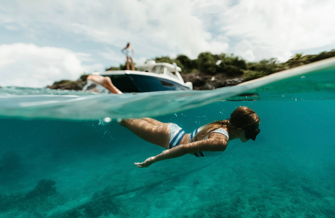 Bitter End Yacht Club collab from the Virgin Islands! Go off their bottom size. Made in the USA, OTEX certified materials
