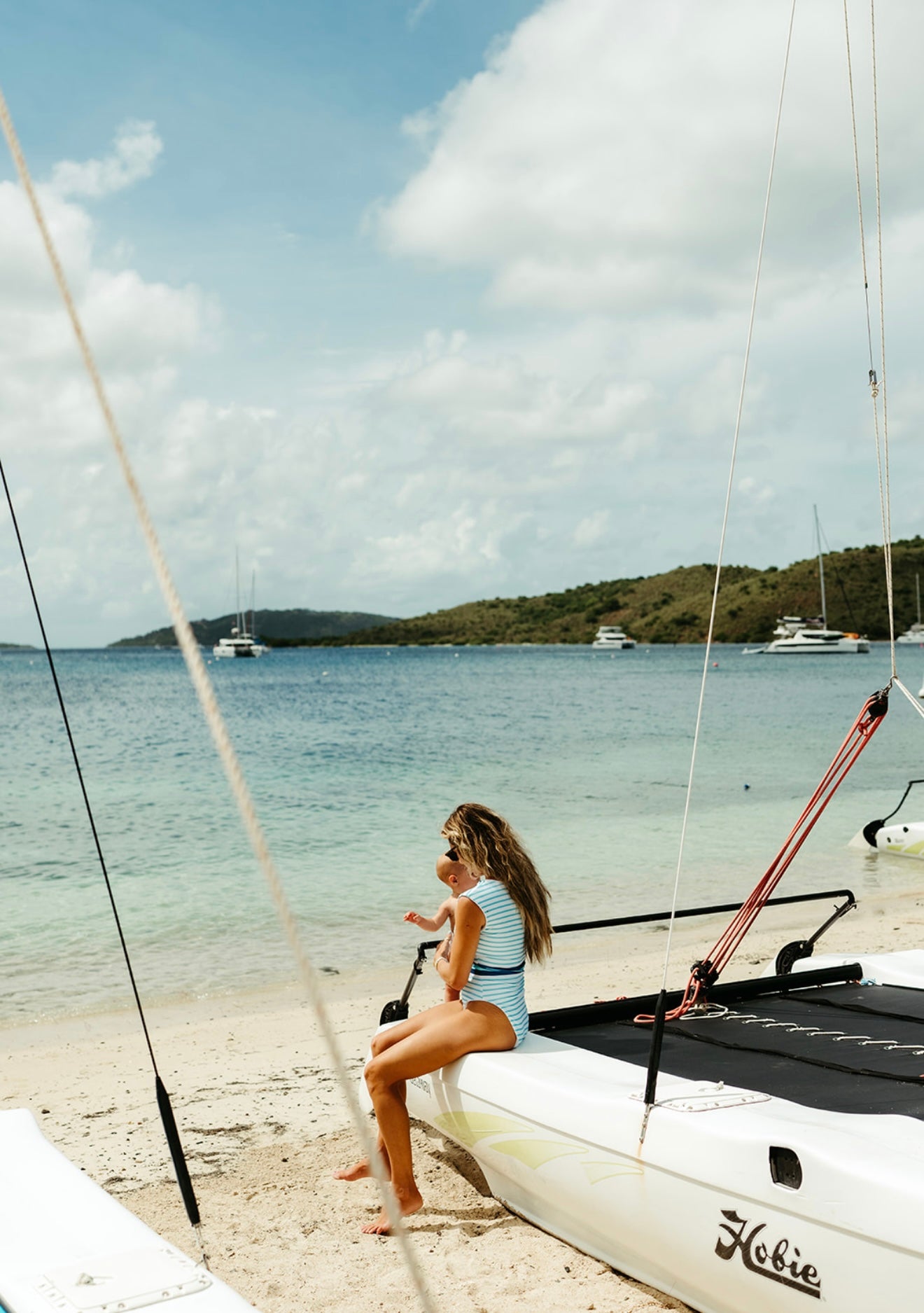 Our new women's style with zip up front. Grows with bump if expecting too! Ribbed material sucks you in. Fuller back coverage. Shades are sea and navy Made in the USA.
