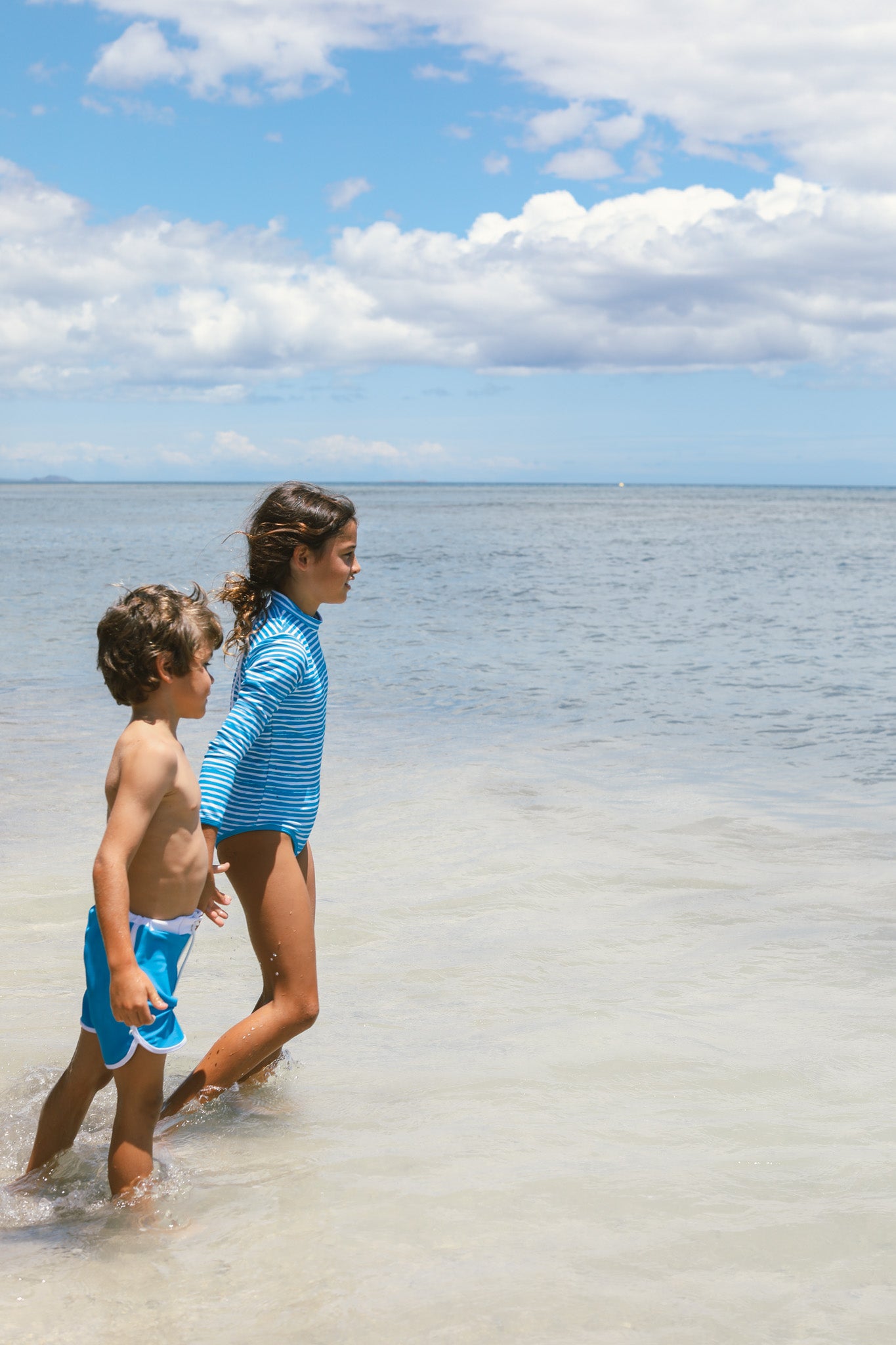 Ribbed mini rashguard in cobalt stripe! Mix and match with the entire family! Runs TTS, pull zipper in back!
