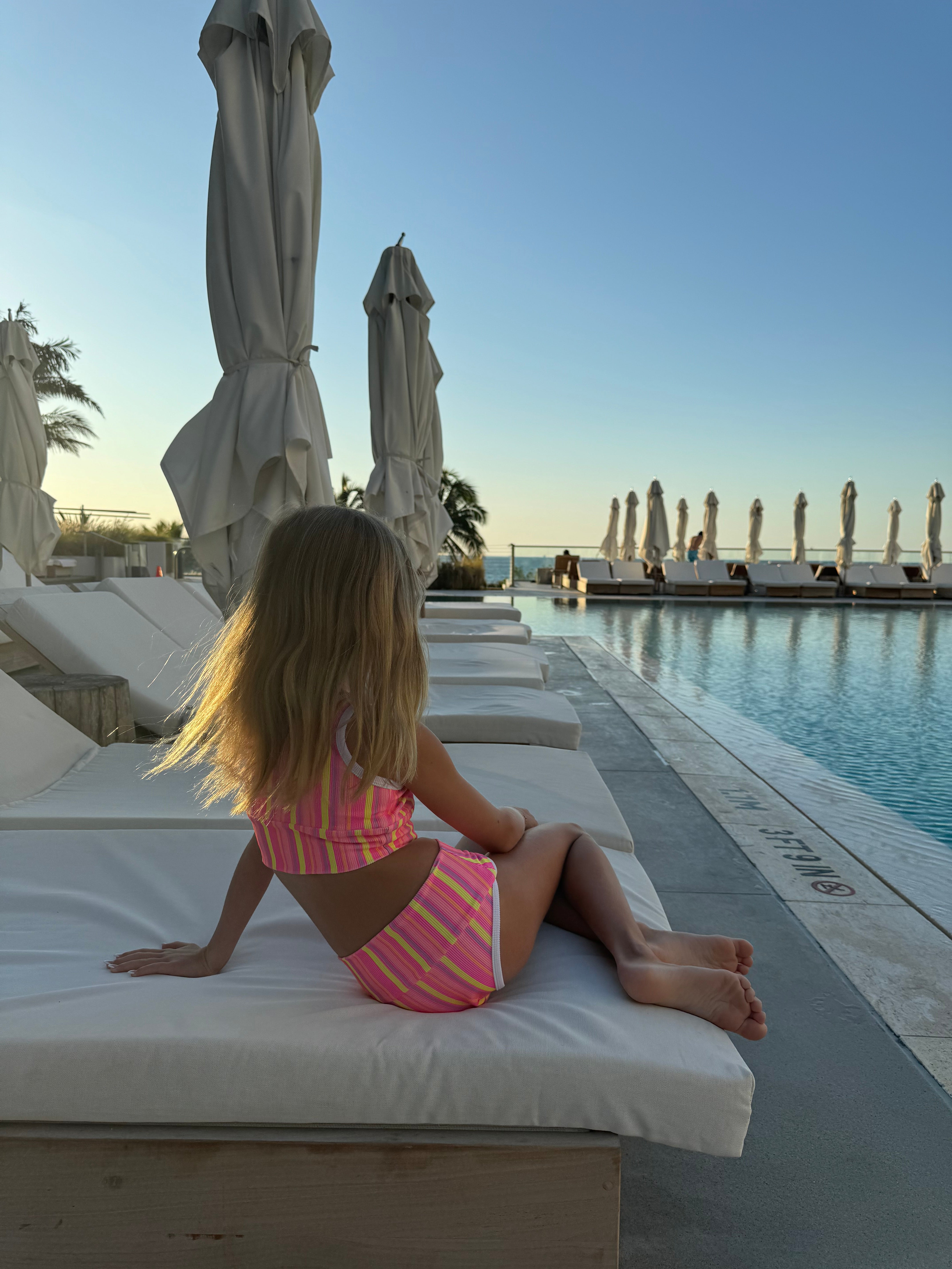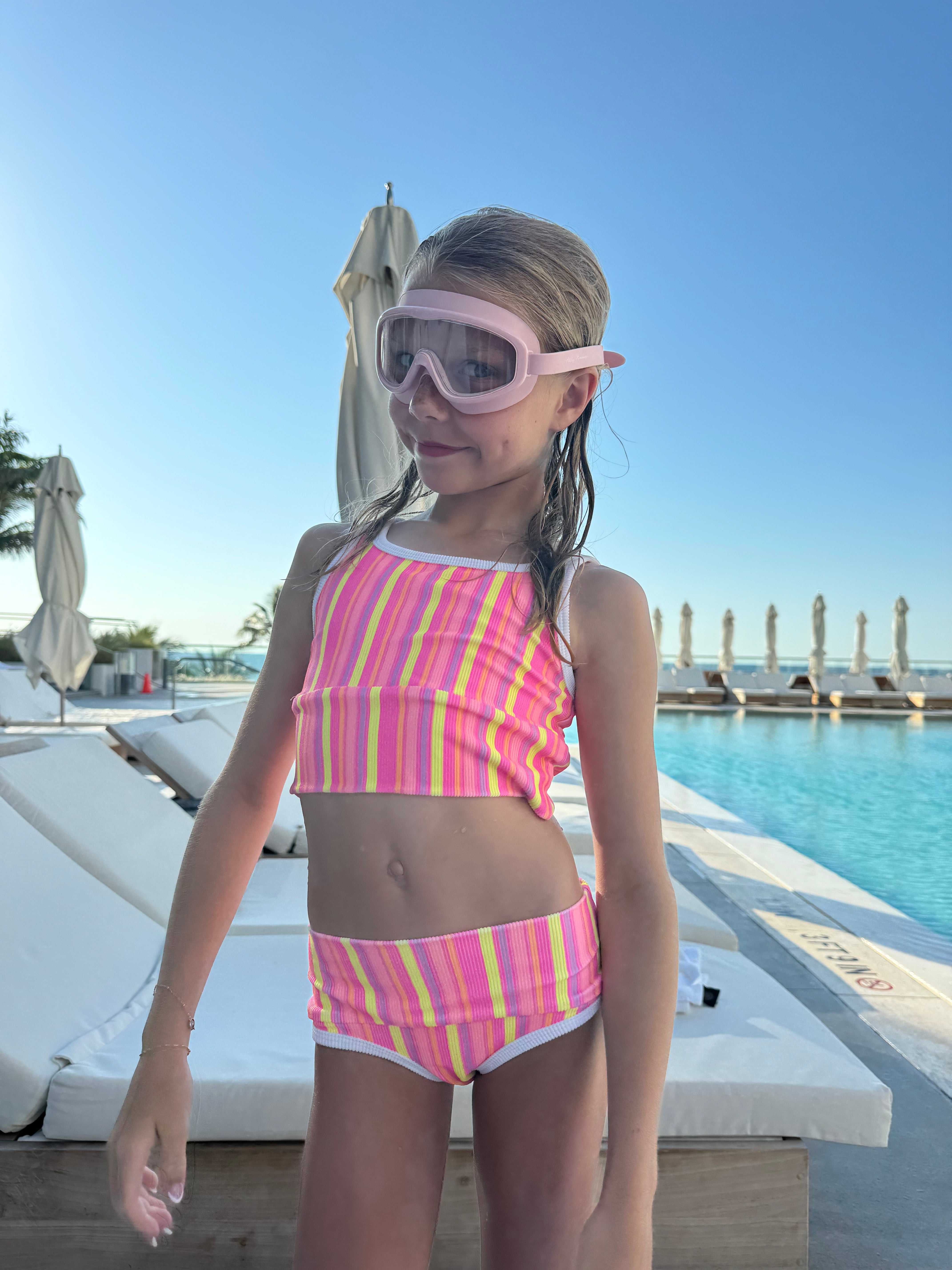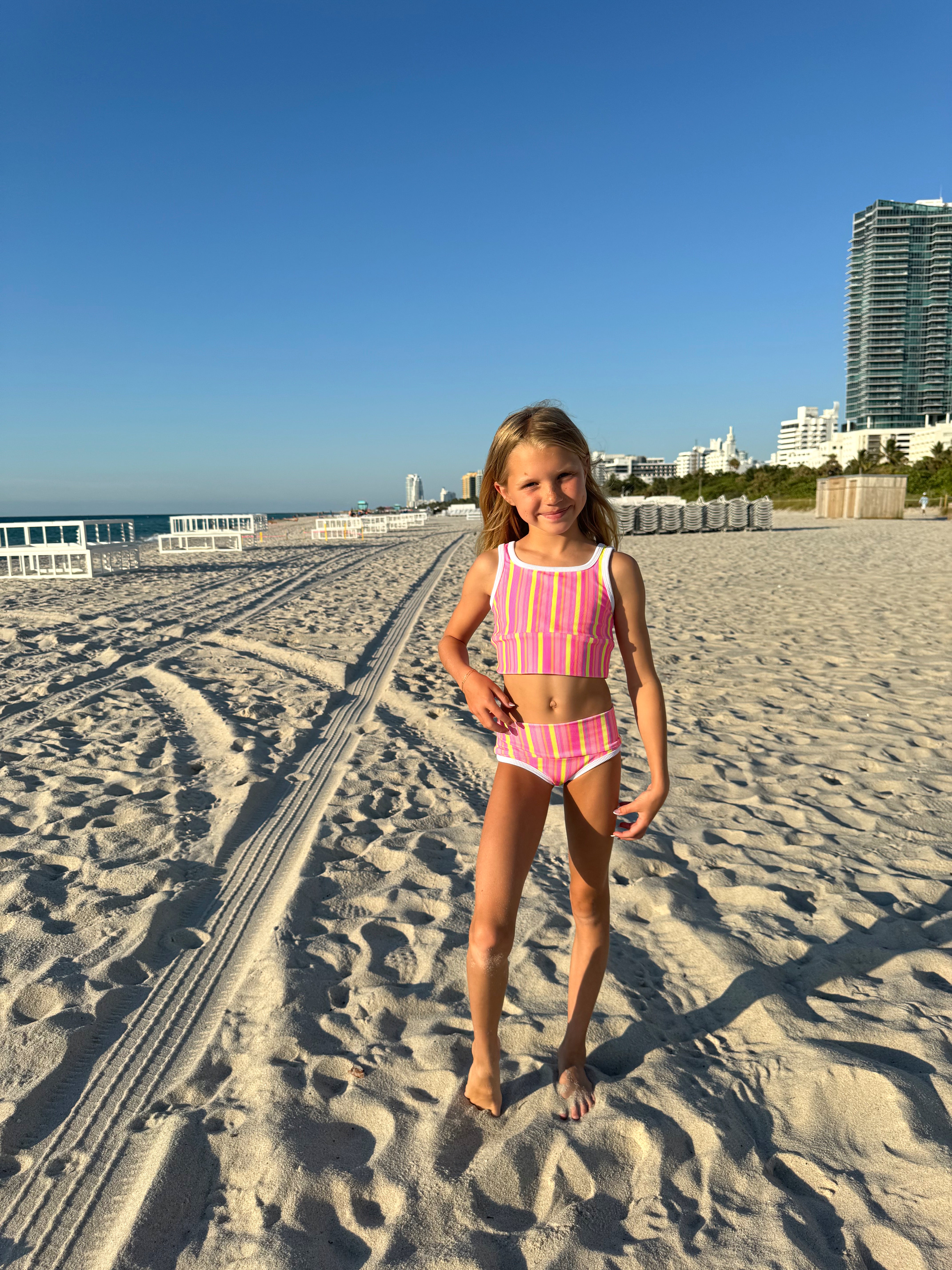 Mini Ribbed girl bikini run TTS.  Model wearing size 6/7. Go off their short size.