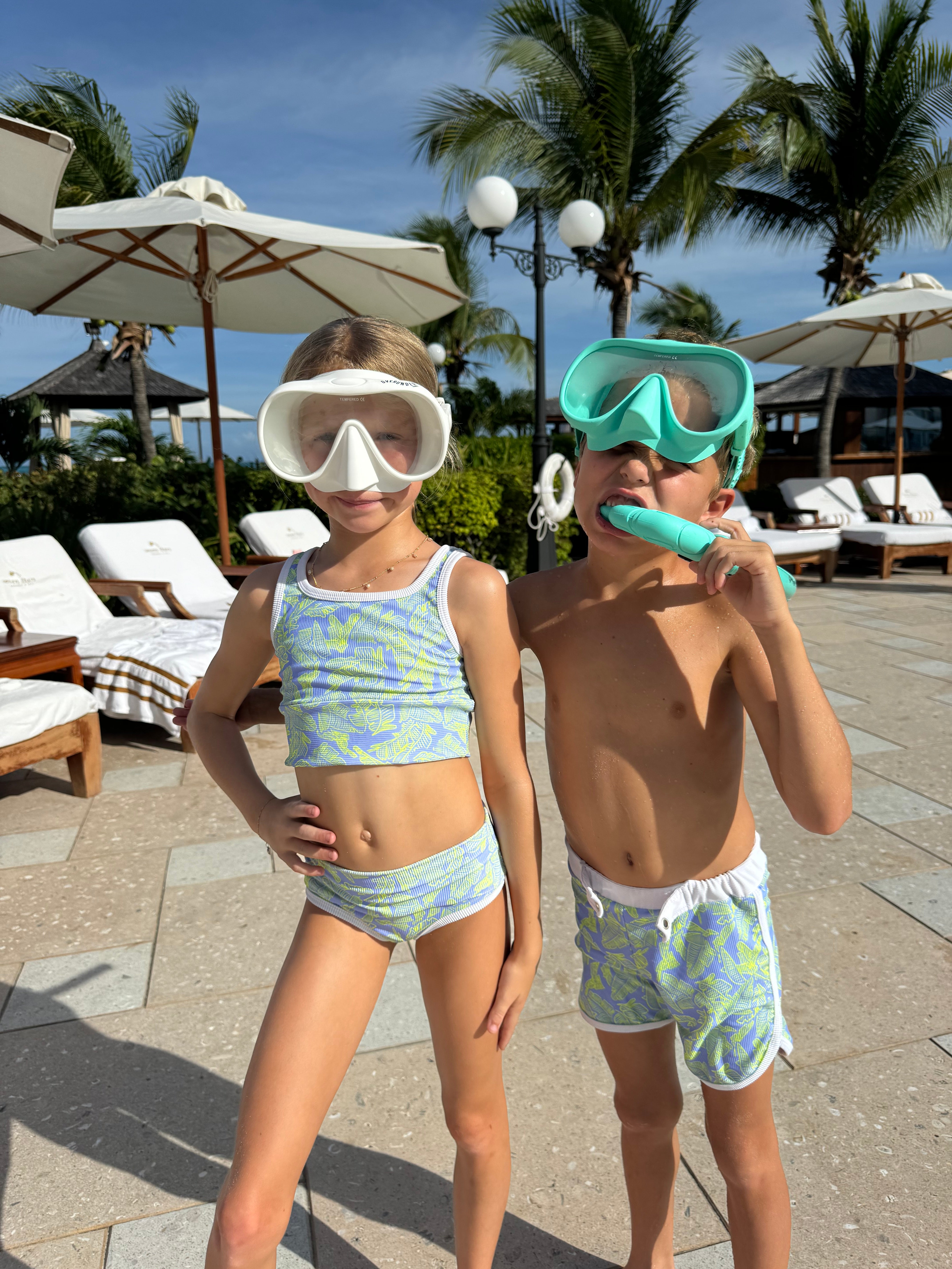 Mini ribbed boy trunks, no liner, run TTS.  Drawstring.