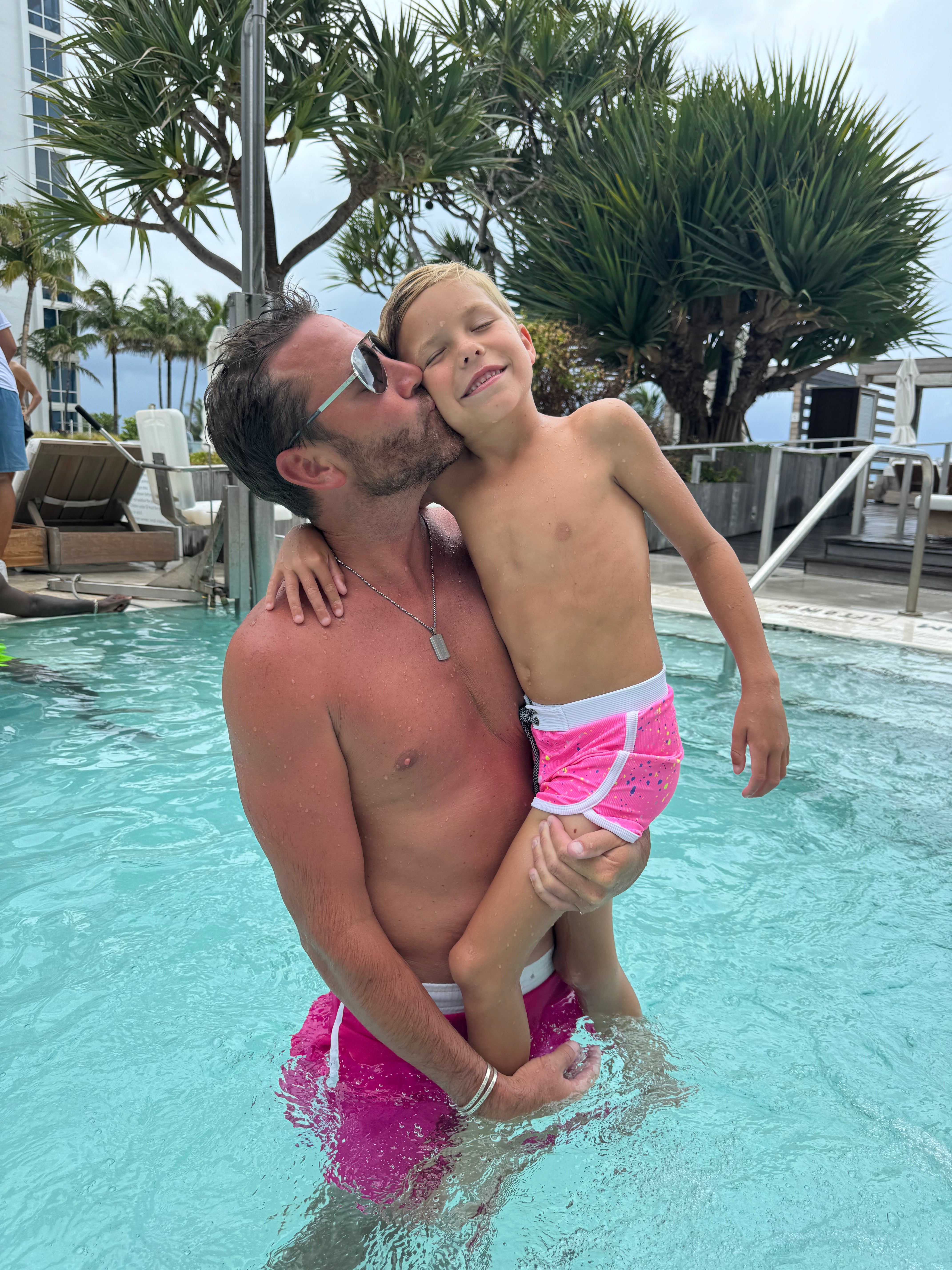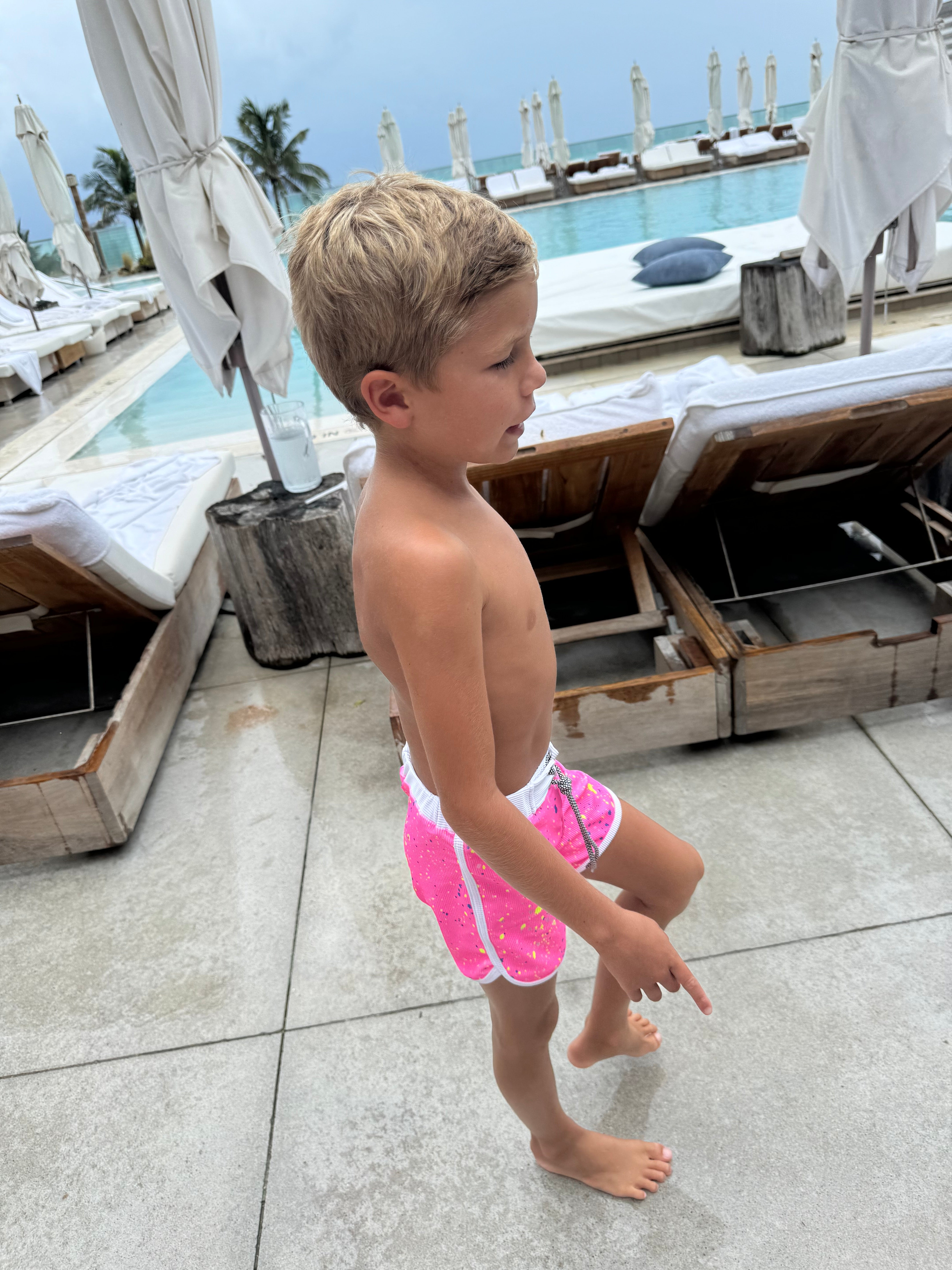 Mini ribbed boy trunks, no liner, run TTS.  Drawstring.