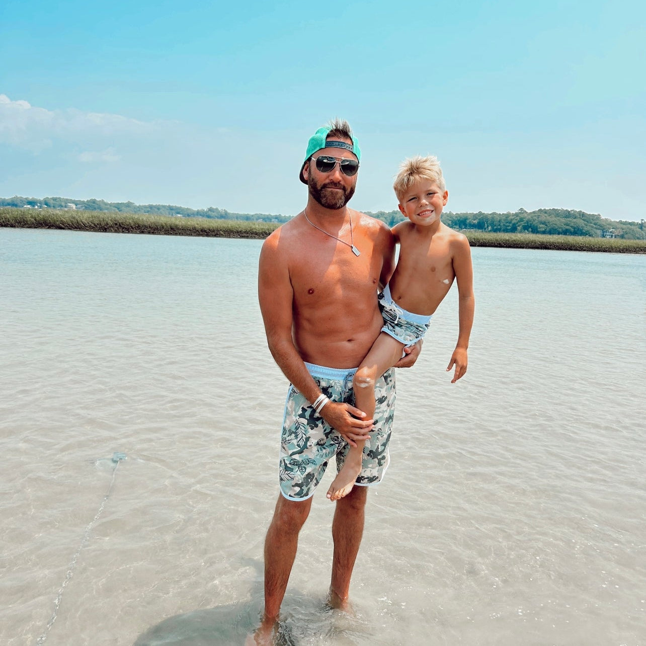 Mens Coastal Camo custom print, runs TTS. Model wearing size Medium, waist 34. No liner, elastic waist band.