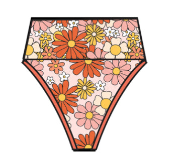 New print, 70s flowers with coral trim. Please select style! Mix and match with Creamsicle or Citrine