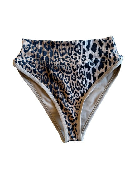 SELECT STYLE BEFORE ADDING TO CART! Holden fuller coverage or Kiawah moderate coverage. Traditional ribbed printed cheetah bottoms, high-waisted. Runs TTS. Model wearing size XS.
