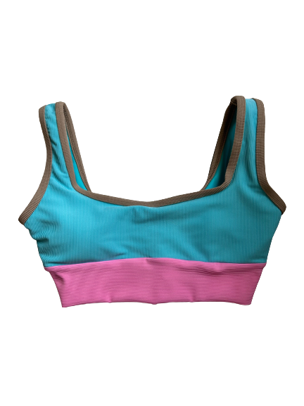Newest Cotton Candy in our best seller shades: Sea, Pitaya with Sand trim! Removable padding and shelf bra, runs TTS.MADE IN THE USA- OEKO-TEX CERTIFIED Material.