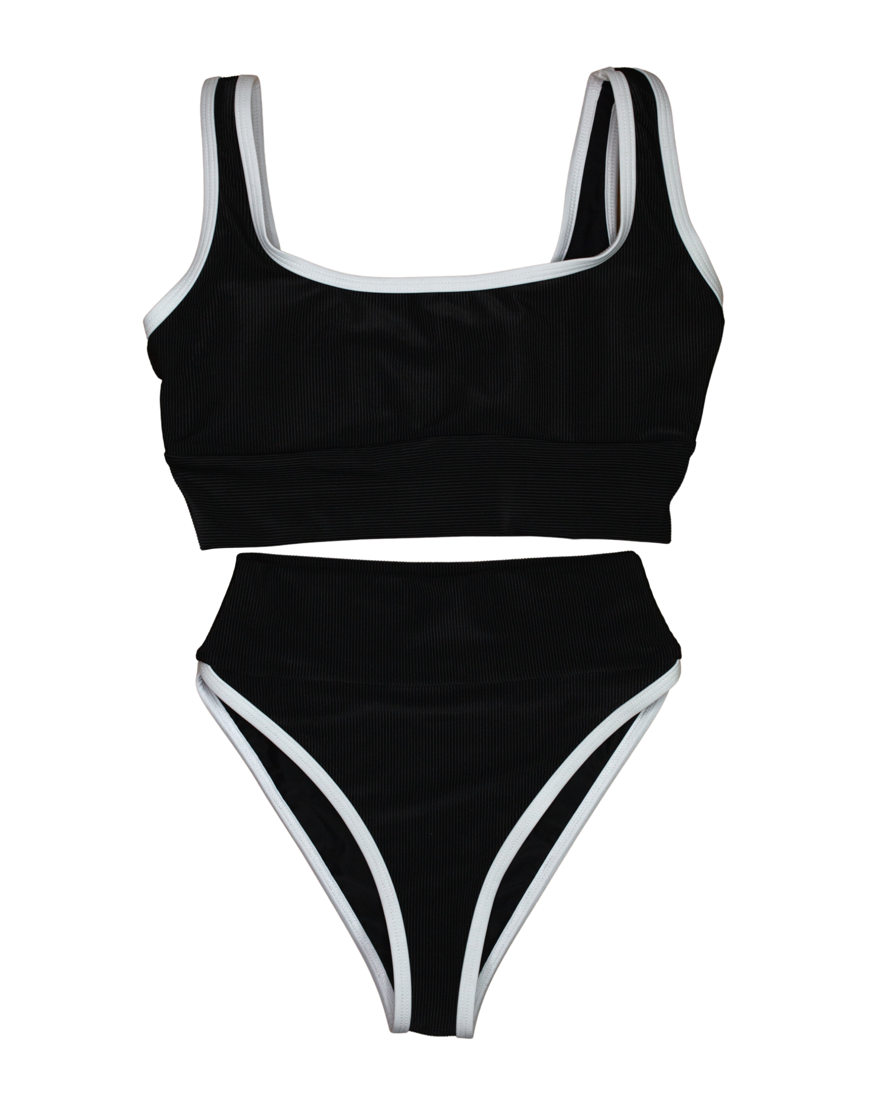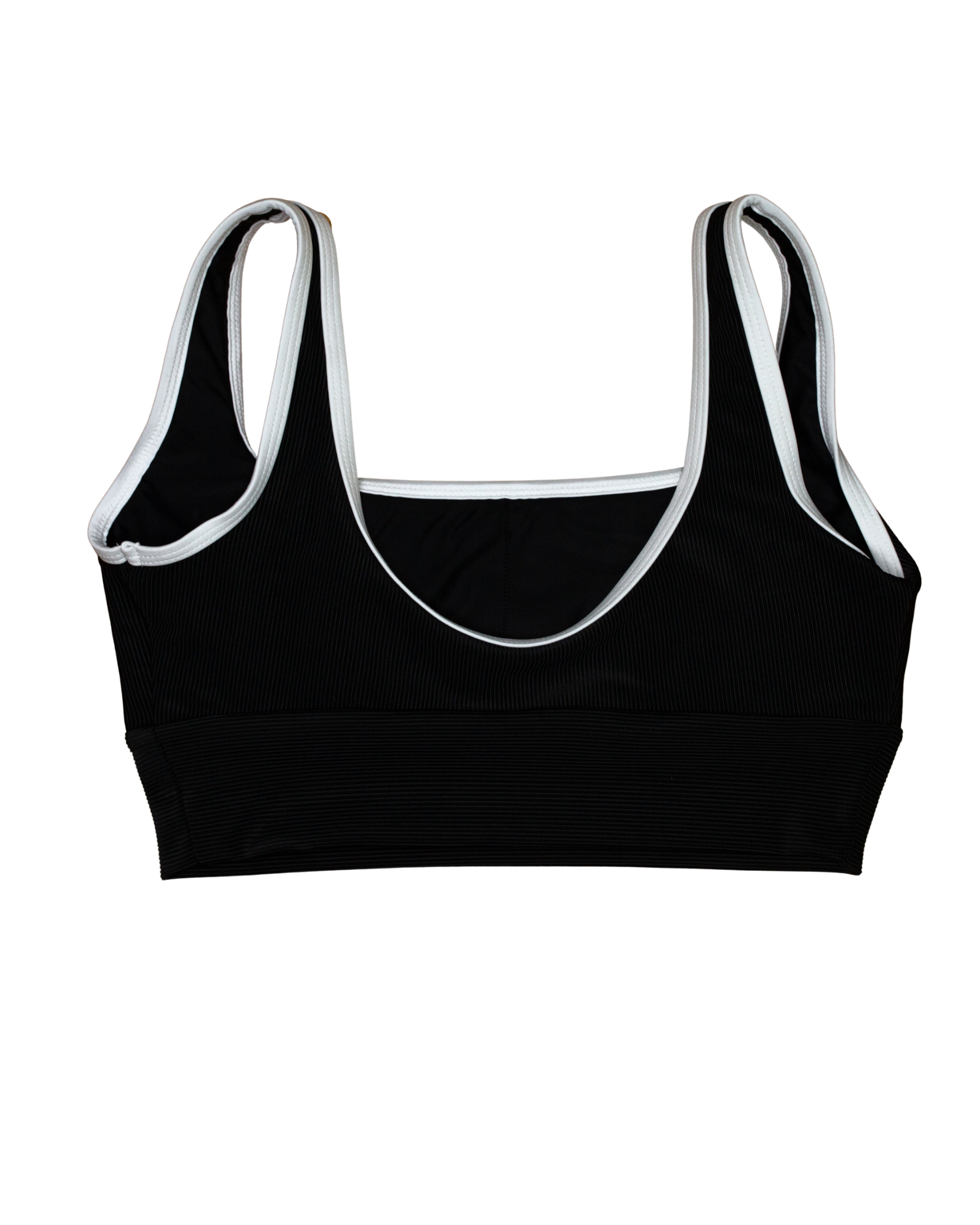 Includes a shelf bra and removable padding. Matching bottoms sold separately. Model wearing size XS top / XS bottom. Runs TTS. Made in the USA.PREORDERS SHIP END OF JUNE