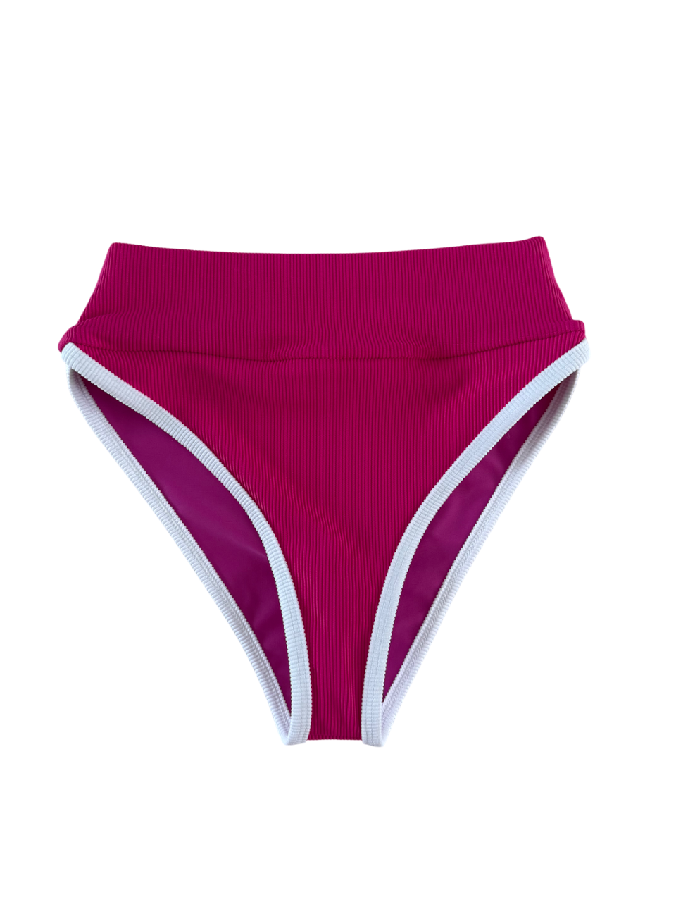 Bikini ribbed bottom in Magenta. High waisted, moderate coverage. Runs TTS. Mix and match with Magnolia Lain