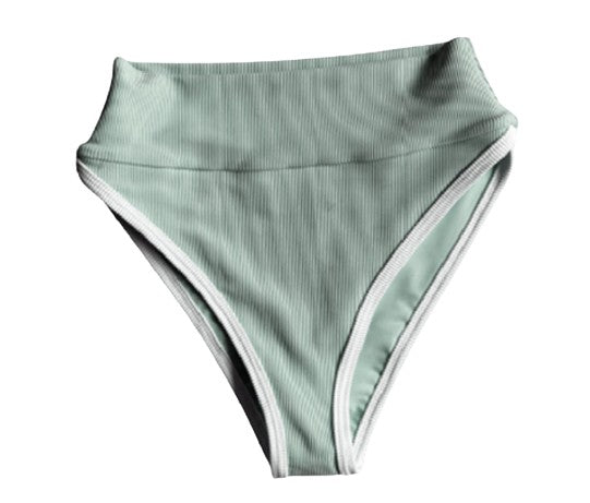 A beautiful light sage color. Bottoms are High waisted. Ribbed material, great for the active mama!