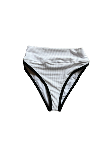 White high waisted ribbed bottoms, double lined with black trim.  Runs TTS.  Top sold separately.