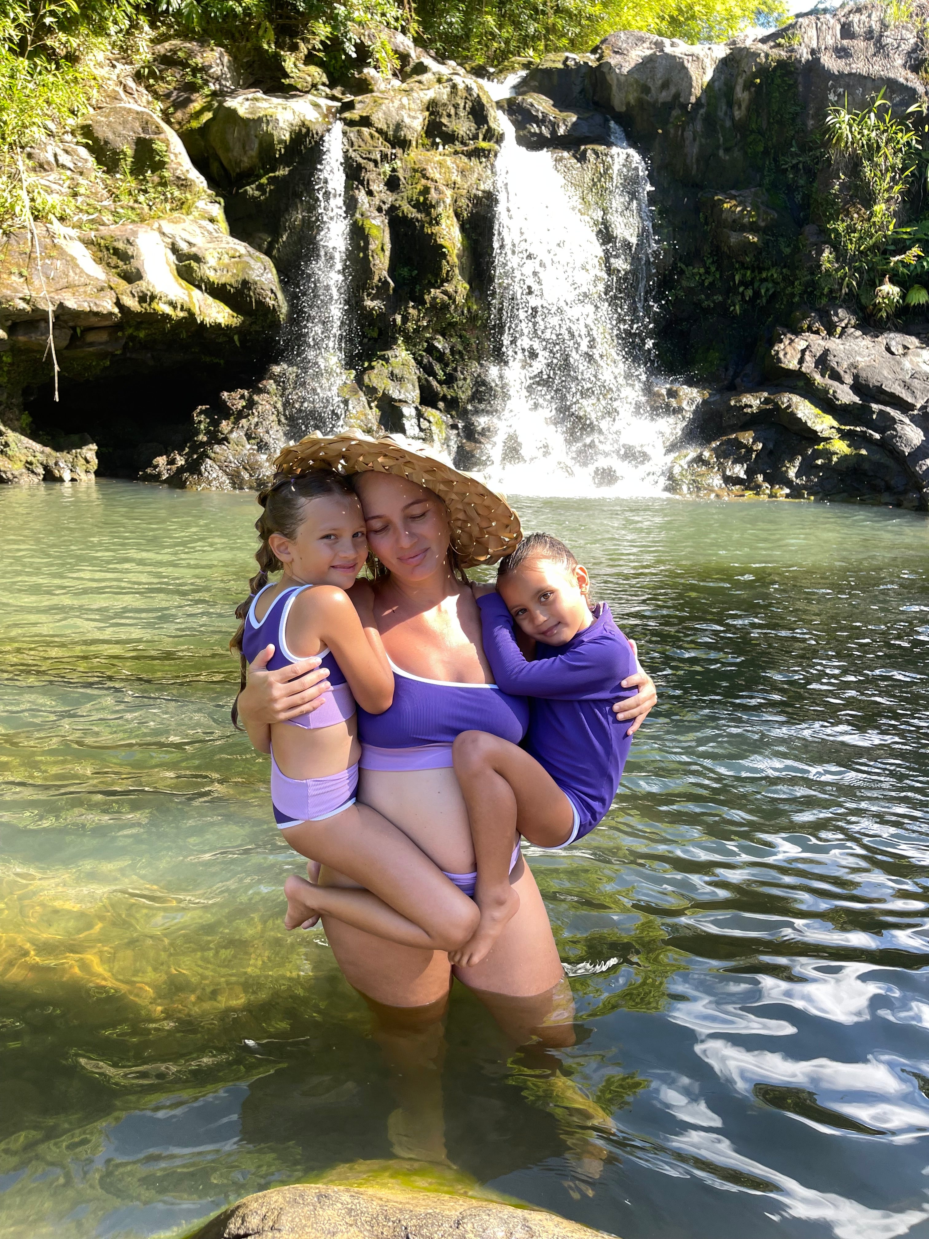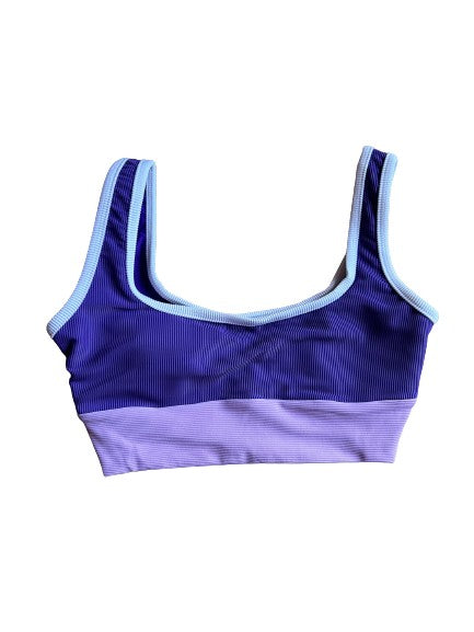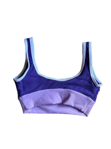 Signature Kiawah Top, colorblock style shades: Plum and Lilac to mix and match! Removable padding and shelf bra! Runs TTS. Made in the USA.