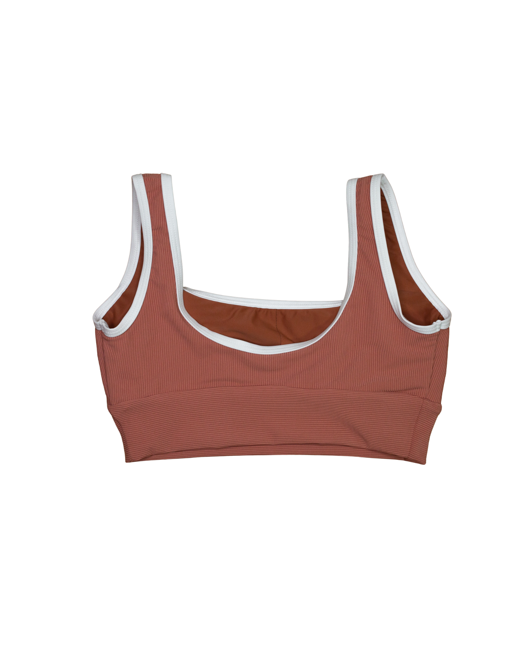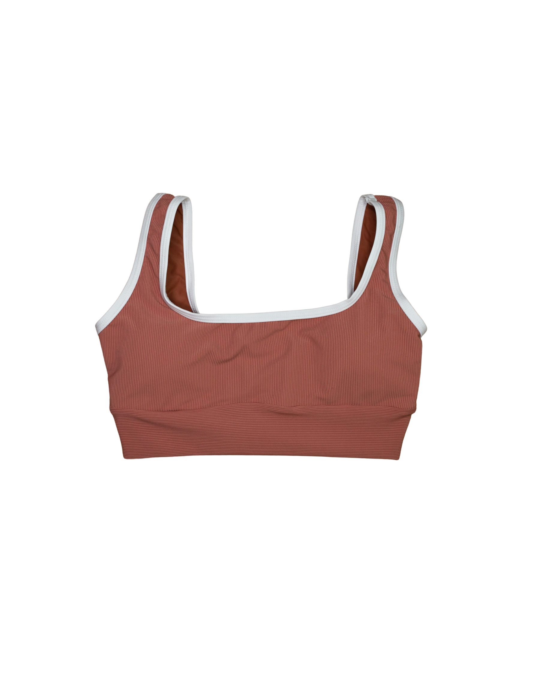 Includes a shelf bra and removable padding. Matching bottoms sold separately. Model wearing size XS top and XS bottom.