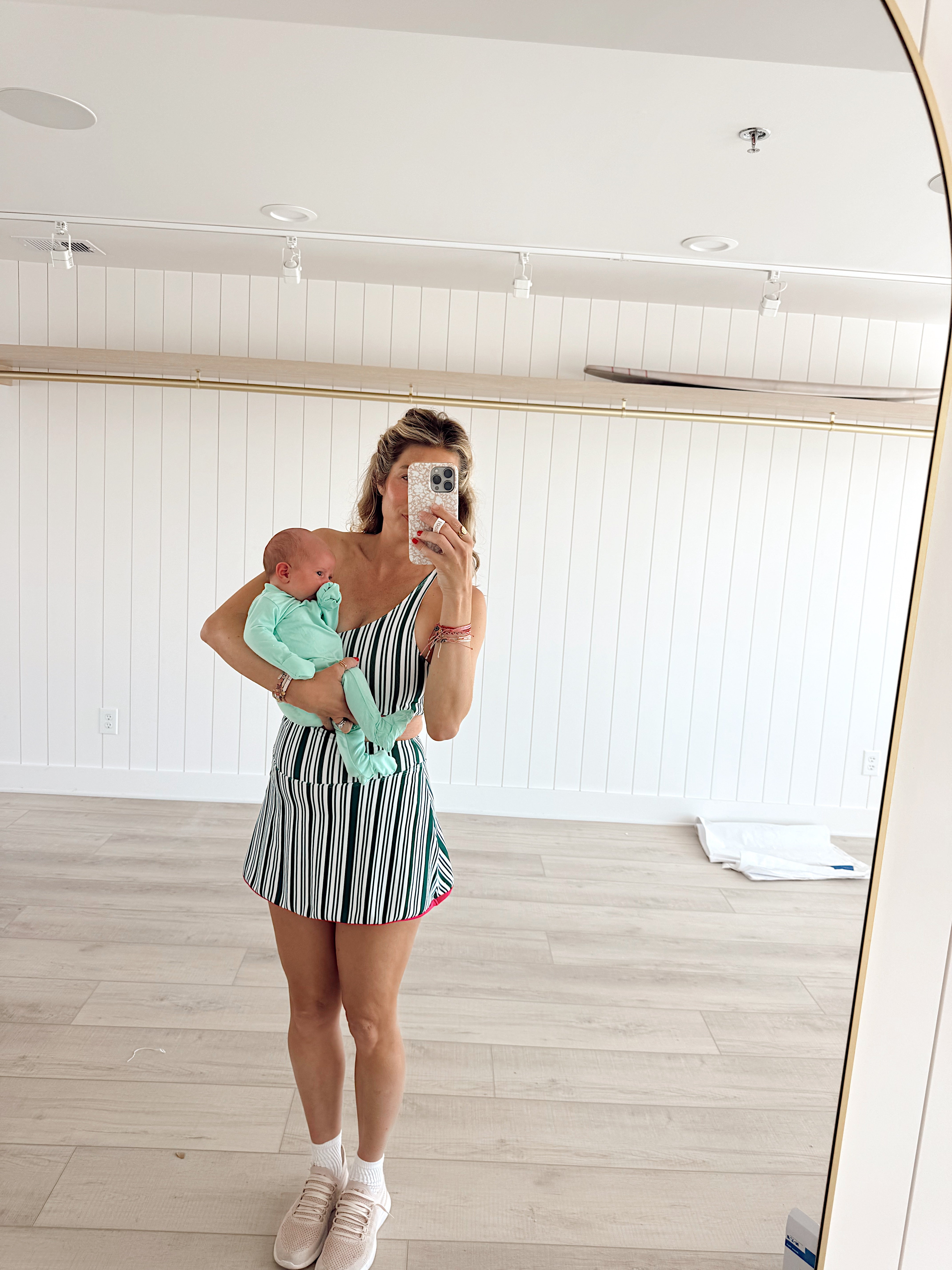 The new one shoulder athletic dress. Ribbed Swim Material, can dual as a swim dress! Built in shorts+ shelf bra with removable padding. Runs TTS. Model wearing size XS.