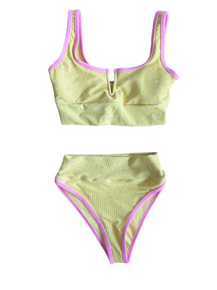 Ribbed highwaisted bottoms run TTS.  Model wearing size XS.