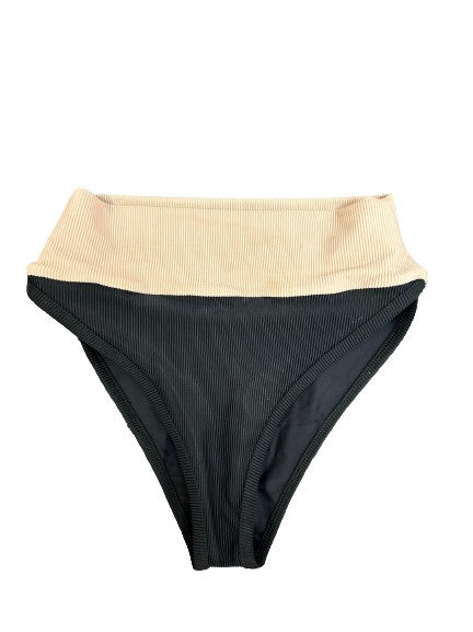 Ribbed signature high-waisted bottoms in Black/Sand Combo with black trim. Top sold separately. Runs TTS.