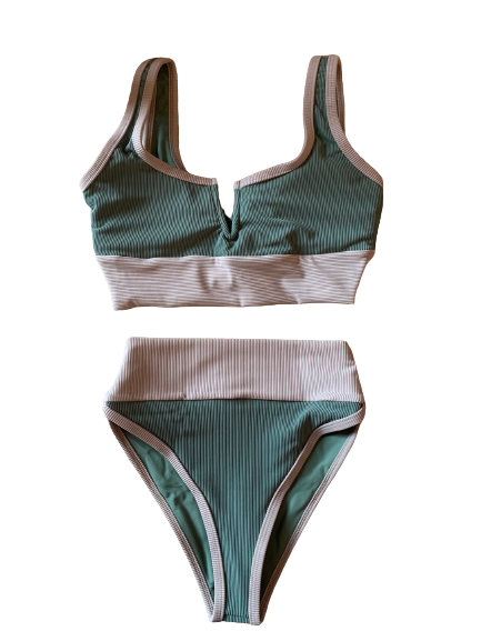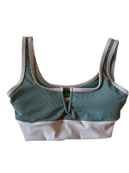Our OG style top with a V wire down middle, still runs TTS. Ribbed sage/sand band. Mix and match with Camo, Sand, Sage, etc! Model wearing size XS.Made in the USA.