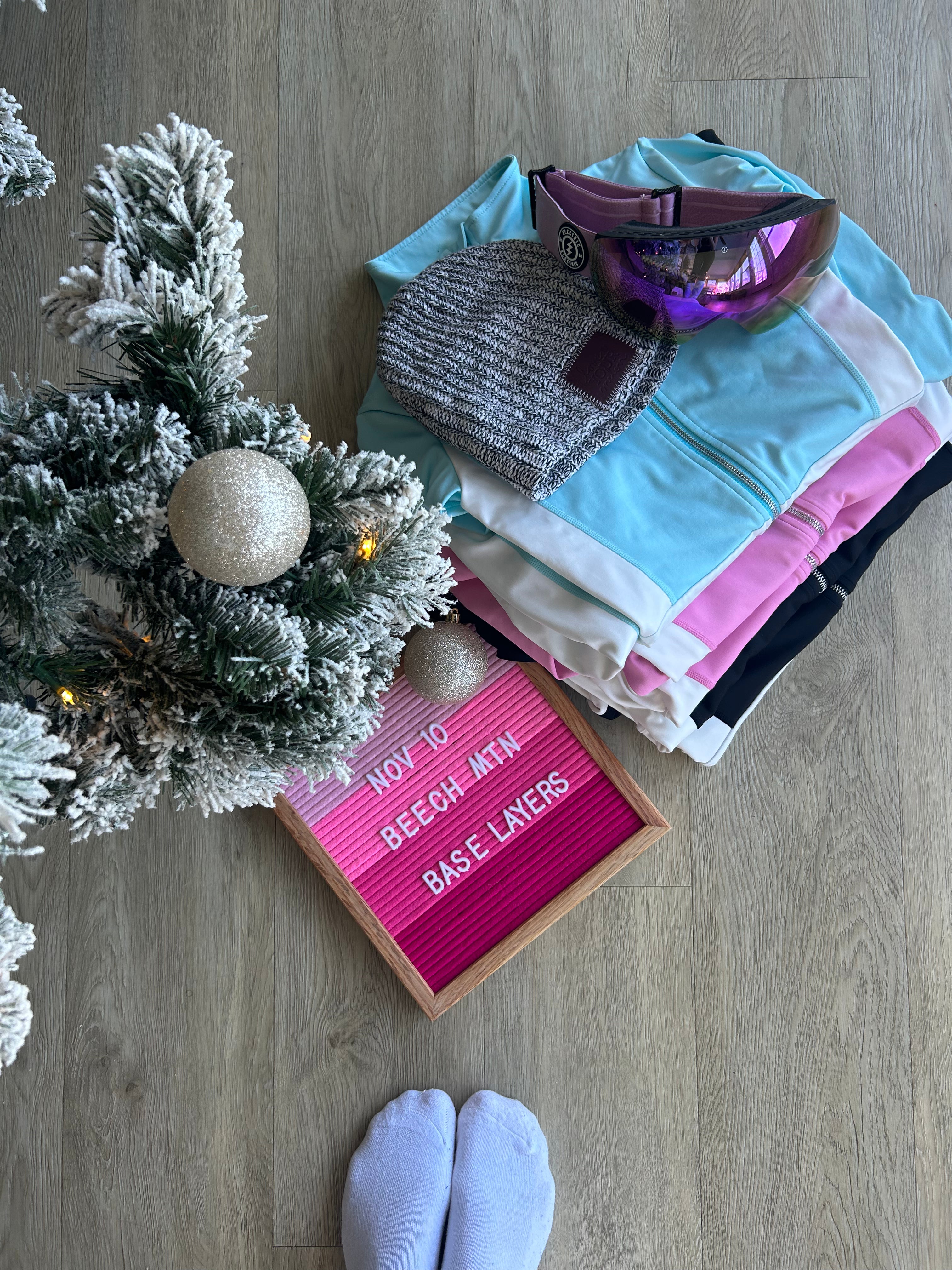 Our new ski base layers, perfect to wear under gear or wear layers under to après! Zip up, runs TTS. Model is wearing size Medium. Size chart in photos.